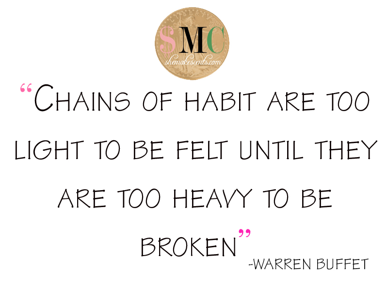 Chains of habit are too light until they are too heavy to be broken.  Think about it like this, if you are in the habit of putting money aside every week, at the end of the year the weight of your weekly sacrifice would be greater than if you only saved for one week and then gave up.  Every week, saving $10.00 here, $70.00 there, $100.00 every once in a while might not seem like a big deal at the time, but every penny adds up.  Every time you save makes the habit of saving that much stronger.  The same can be said for  bad habits.  Spending $10.00 here and $70.00 there may not seem like a big deal in the moment.  But over time, that random spending becomes a bad habit and the weight of your debt becomes a heavy burden to carry.