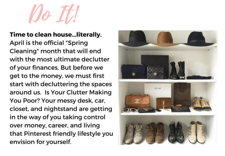 It’s time for you to pull up your sleeves and get to work. This month I challenge you to get rid of everything that does not make you happy so that you can give your attention to things that do. For me, that always starts with physical clutter. I cannot think clearly in a cluttered space and I am willing to bet that some of you can say the same thing. I do a little at a time and I start with the quickest project that will give the quickest gratification. My purge started with my nightstand where I keep a mix of books I’m reading, books on display, journals (I am always writing something), jewelry, phone accessories, receipts, water etc. See what I mean? It’s funny, do we even need or love half of the material things that are taking up space in our space? Take that stuff and sell it to put towards a savings goal…like that dream vacation so many of you wrote to me about. I don’t care what you do with it, just get it out of your space. Nightstand done….next up, my makeup vanity.