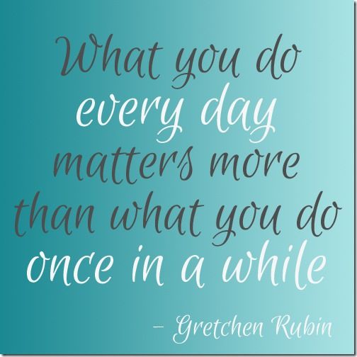 I really love this quote by author Gretchen Rubin. I first heard it while reading her book, The Happiness Project, which is an account of the year she spent test-driving the wisdom of the ages, the current scientific studies, and the lessons from popular culture about how to be happier. What are you doing every to be better?